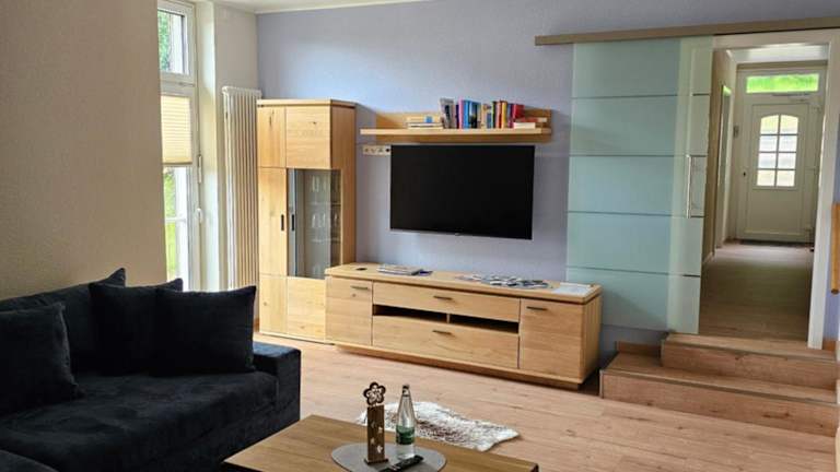 Die Ferienwohnung bietet Platz in zwei Schlafzimmern sowie einem Wohnzimmer mit einem Flachbild-TV. Die gut ausgestattete Küche ist mit einem Kühlschrank und einem Geschirrspüler ausgestattet. Es befindet sich ein Badezimmer mit Dusche in der Ferienwohnung. Handtücher und Bettwäsche werden bereitgestellt.