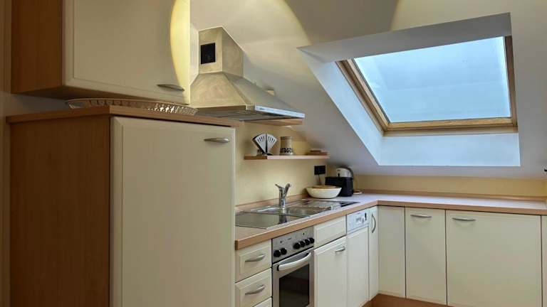 Die Ferienwohnung umfasst ein Schlafzimmer und ein Wohnzimmer. Sie bietet genügend Platz für eine oder mehrere Personen und ermöglicht einen angenehmen Aufenthalt. Die gut ausgestattete Küchenzeile unterstützt Verwöhnmomente in den einfachen, aber gemütlichen Räumlichkeiten.