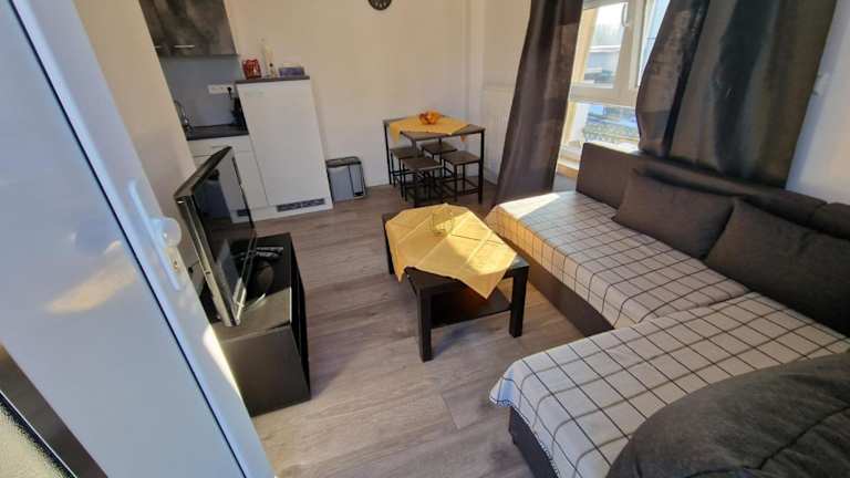 Die Ferienwohnung besteht aus einem Schlafzimmer und einem Wohnzimmer sowie einer voll ausgestatteten Küche, die mit Kühlschrank und Wasserkocher ausgestattet ist. Ein Badezimmer mit Dusche und kostenlosen Pflegeprodukten gehört ebenfalls zur Ausstattung. Handtücher und Bettwäsche werden bereitgestellt. Kostenloses WLAN ist in der gesamten Unterkunft verfügbar.
