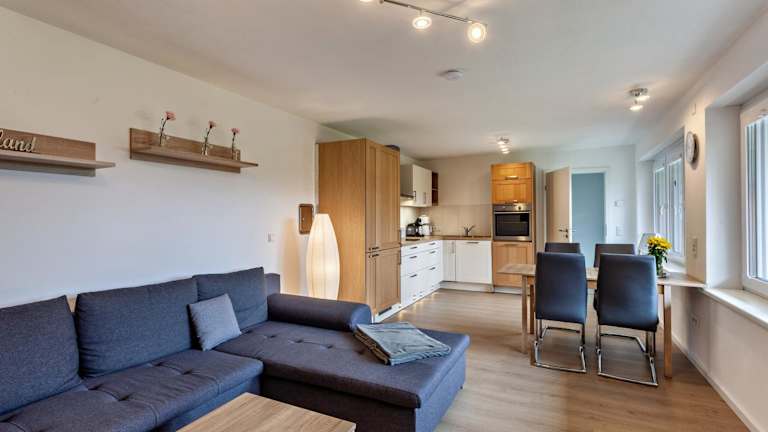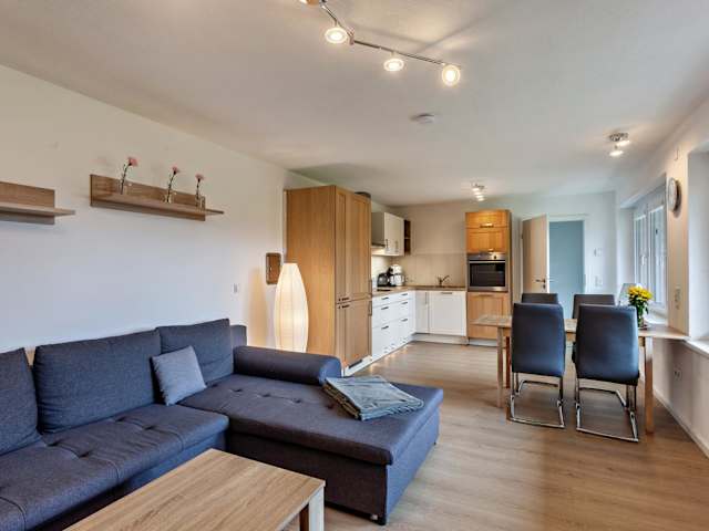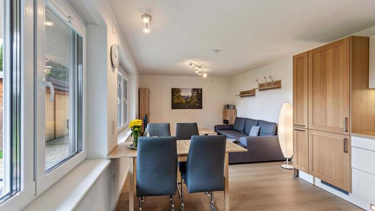 Die Ferienwohnung beinhaltet ein Schlafzimmer, ein Wohnzimmer mit TV, eine gut ausgestattete Küche mit Kühlschrank und Geschirrspüler, sowie ein Badezimmer mit Dusche. Eine Terrasse mit Bergblick ist ebenfalls vorhanden. Handtücher und Bettwäsche werden bereitgestellt.