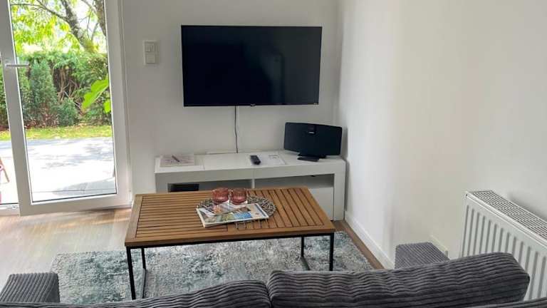 Die Ferienwohnung umfasst ein Schlafzimmer und ist mit einem TV mit Kabelkanälen ausgestattet. Die gut ausgestattete Küchenzeile verfügt über einen Kühlschrank und einen Geschirrspüler. Ein Badezimmer mit Dusche sowie Handtücher und Bettwäsche stehen den Gästen ebenfalls zur Verfügung.