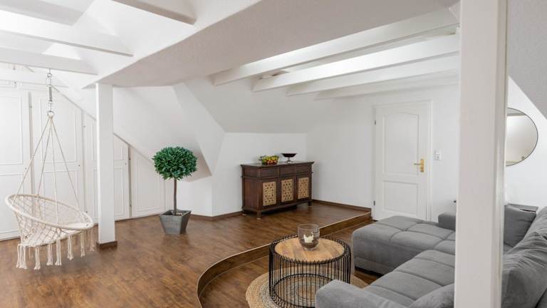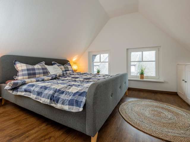 Die Ferienwohnung besteht aus zwei Schlafzimmern, einem Wohnzimmer sowie einer voll ausgestatteten Küche, die mit Kühlschrank und Kaffeemaschine ausgestattet ist. Des Weiteren beinhaltet die Wohnung ein Badezimmer mit Dusche und Haartrockner. Handtücher und Bettwäsche werden zur Verfügung gestellt. Schallisolierte Zimmer sorgen für eine ruhige Atmosphäre während des Aufenthalts.