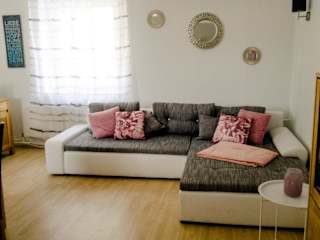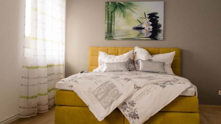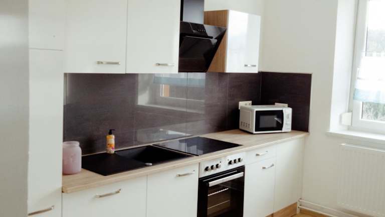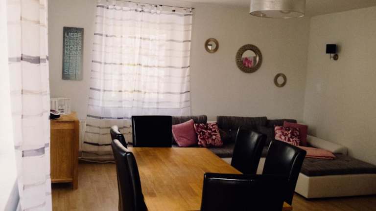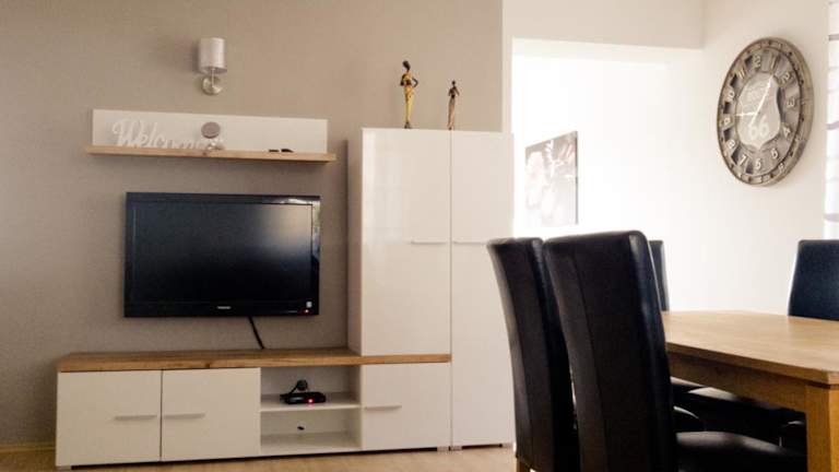 Die Ferienwohnung besteht aus zwei Schlafzimmern, einem Wohnzimmer und einer voll ausgestatteten Küche, die mit einem Kühlschrank und einer Kaffeemaschine ausgestattet ist. Zudem gibt es ein Badezimmer mit Dusche und Badewanne. Handtücher und Bettwäsche werden bereitgestellt.