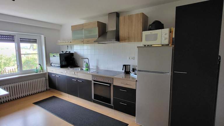 Die gut ausgestattete Küche der Ferienwohnung bietet die Möglichkeit zur Selbstverpflegung. Sie beinhaltet einen Kühlschrank, einen Geschirrspüler und einen Ofen. Es sind keine weiteren Verpflegungsmöglichkeiten vorhanden.
