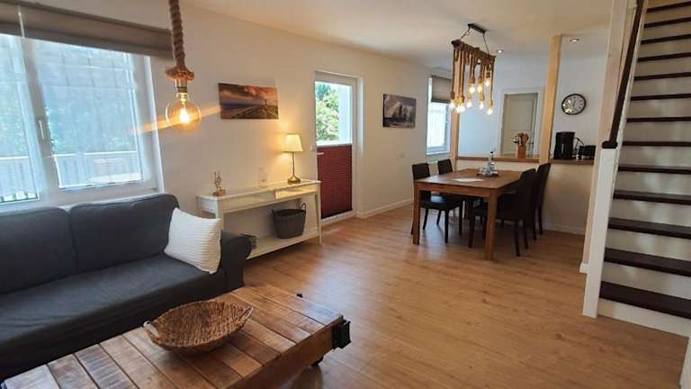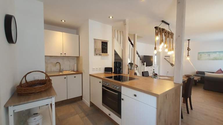 Die Ferienwohnung Kranich bietet eine rustikale Atmosphäre und ist geeignet für Gäste, die eine Selbstversorgerunterkunft suchen. Sie bezieht sich auf einen privaten Bereich mit einem Schlafzimmer, einem Wohnzimmer sowie einer voll ausgestatteten Küche. Die Unterkunft ist für Nichtraucher konzipiert und blanket über eine gemütliche Terrasse.