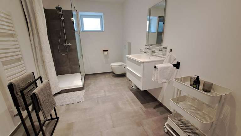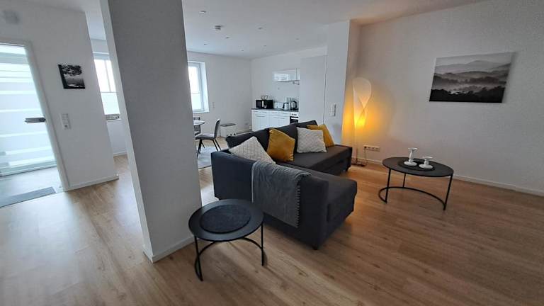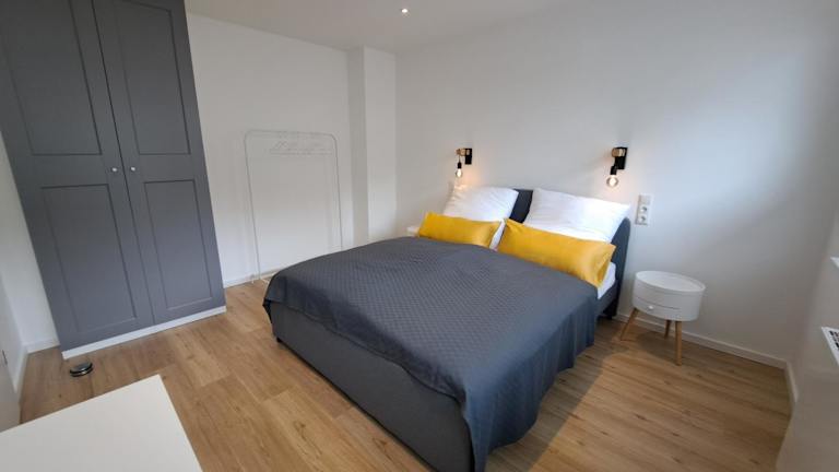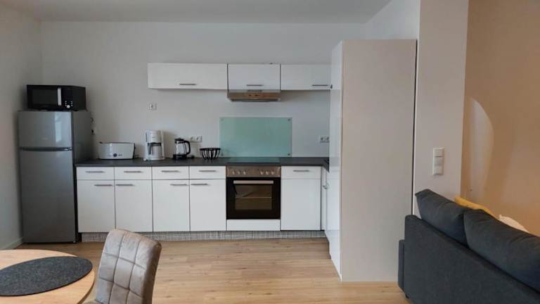 Die Ferienwohnung besteht aus 1 Schlafzimmer und einem Wohnraum. Sie bietet eine voll ausgestattete Küche mit Kühlschrank und Kaffeemaschine sowie ein Badezimmer mit Dusche und Haartrockner. Handtücher und Bettwäsche werden bereitgestellt.
