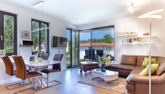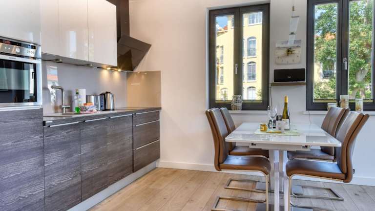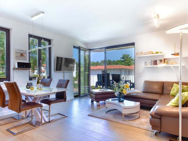 Die Ferienwohnung "Lachmöwe" in der Villa Andrea Baabe liegt in Baabe, nur 200 m vom Strand Baabe entfernt. Auch der Selliner Südstrand ist mit 300 m in nächster Nähe, während der Strand im Ostseebad Sellin 1,3 km entfernt ist.