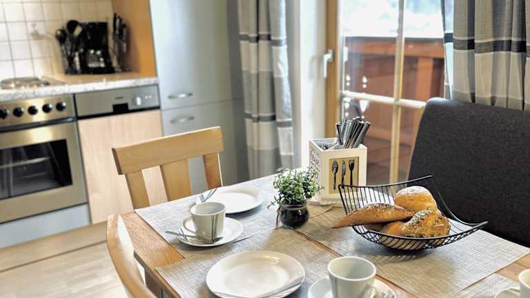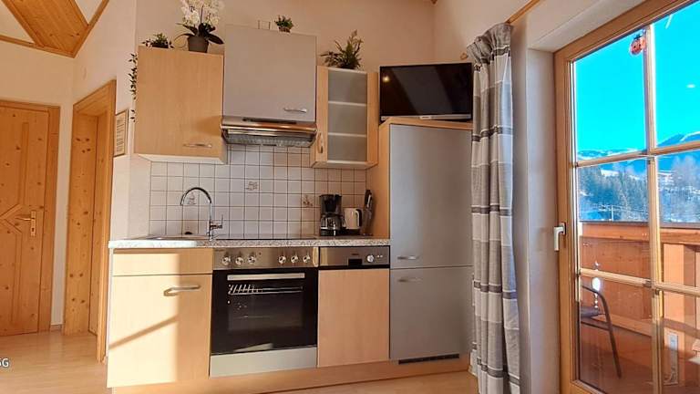 Die Ferienwohnung bietet 2 Schlafzimmer, 1 Badezimmer, sowie Bettwäsche und Handtücher. Zur Ausstattung gehört ein TV mit Kabelkanälen, eine voll ausgestattete Küche und ein Balkon mit Blick auf die Berge. Des Weiteren steht ein Kinderspielplatz zur Verfügung und es gibt einen Garten mit Grillmöglichkeiten.