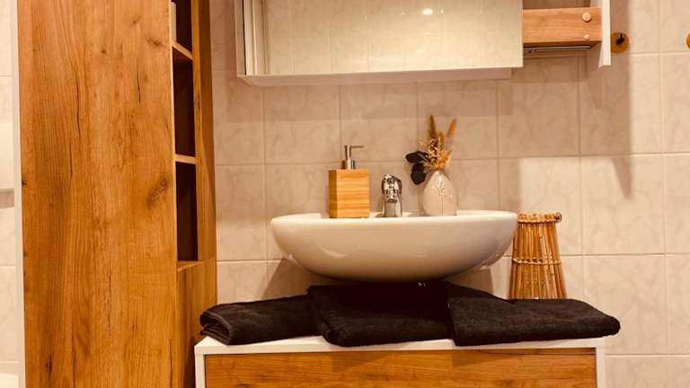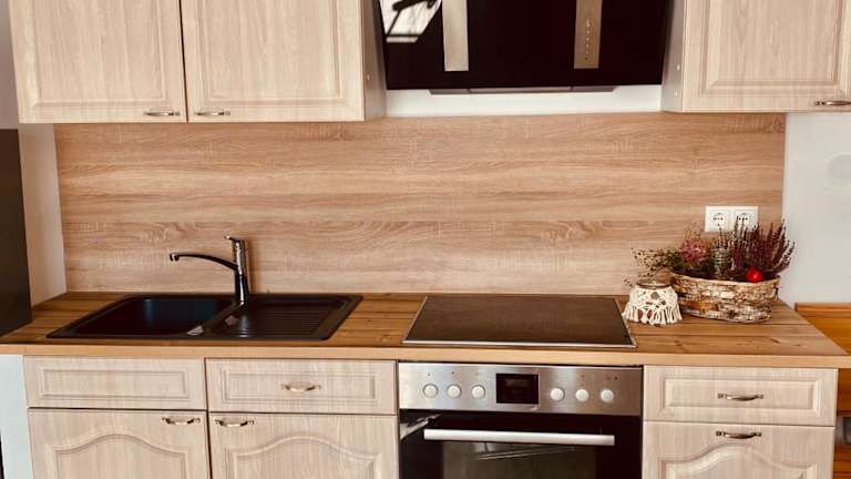 Die Ferienwohnung verfügt über ein Schlafzimmer, eine Küche, die mit einem Kühlschrank und einem Ofen ausgestattet ist, sowie ein Badezimmer mit Dusche. Zudem sind ein Flachbild-TV und ein Sitzbereich vorhanden. Bettwäsche und Handtücher werden bereitgestellt.