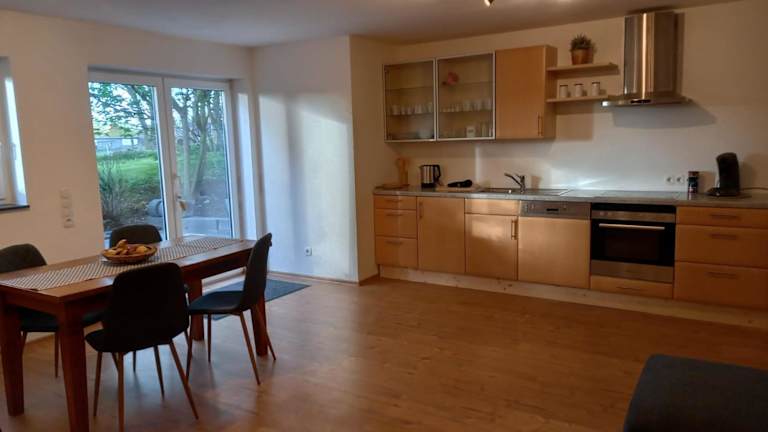 Die gut ausgestattete Küche der Ferienwohnung umfasst einen Kühlschrank und einen Geschirrspüler, wodurch Selbstverpflegung möglich ist. Neben verschiedenen Ausstattungsmerkmalen sind jedoch keine spezifischen Verpflegungsmöglichkeiten angegeben.