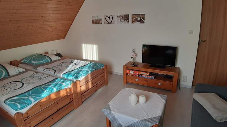Die Ferienwohnung Leopold-Risch befindet sich in Ralswiek, 34 km von Rügendamm und 38 km von der Marienkirche Stralsund entfernt. In der Nähe gibt es verschiedene Möglichkeiten zur Erkundung der Umgebung, darunter Fahrradfahren.