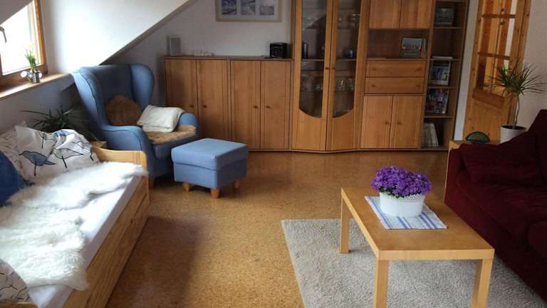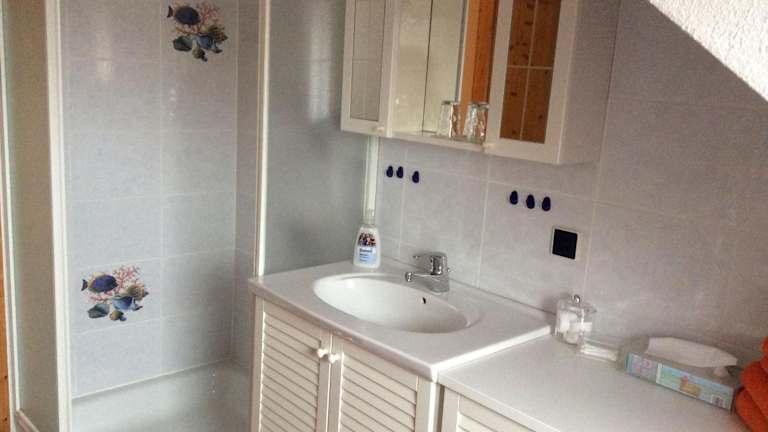 Die Ferienwohnung besteht aus zwei Schlafzimmern, einem Wohnzimmer mit TV und einer komplett ausgestatteten Küche mit Kühlschrank und Geschirrspüler. Ein Badezimmer mit Dusche ergänzt die Ausstattung der Wohnung. Ein Babybett kann auf Anfrage bereitgestellt werden.