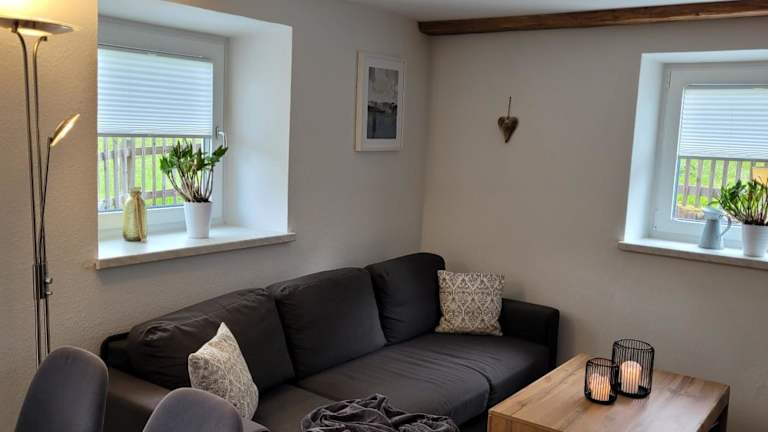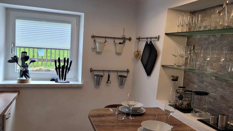 Die Ferienwohnung umfasst ein Schlafzimmer sowie ein Wohnzimmer. Sie ist ausgestattet mit einem Flachbild-TV, einer gut ausgestatteten Küche mit Kühlschrank und Ofen sowie einem Badezimmer mit Dusche. Handtücher und Bettwäsche werden bereitgestellt und eine Grillmöglichkeit sorgt für zusätzlichen Genuss im Freien.