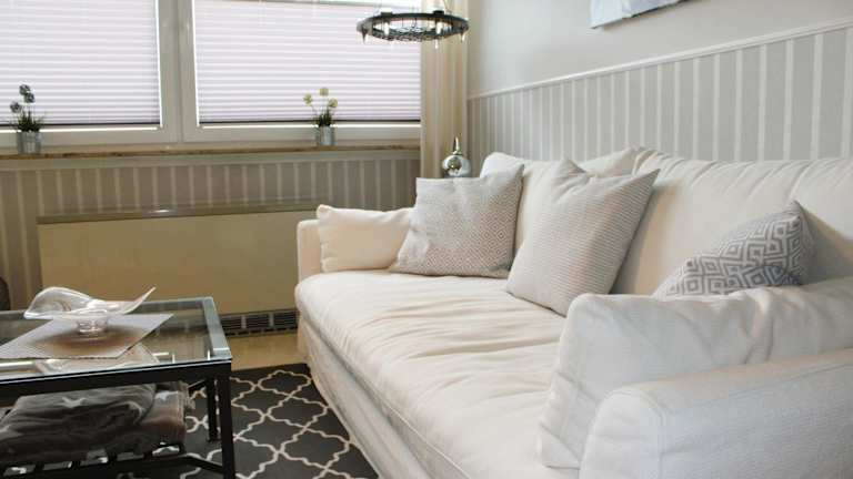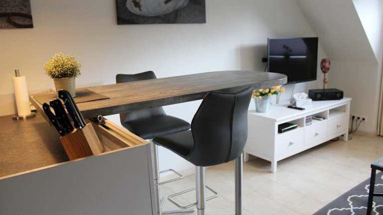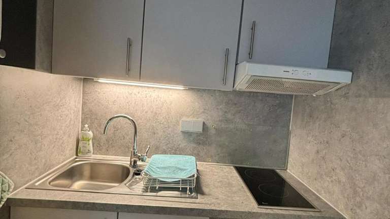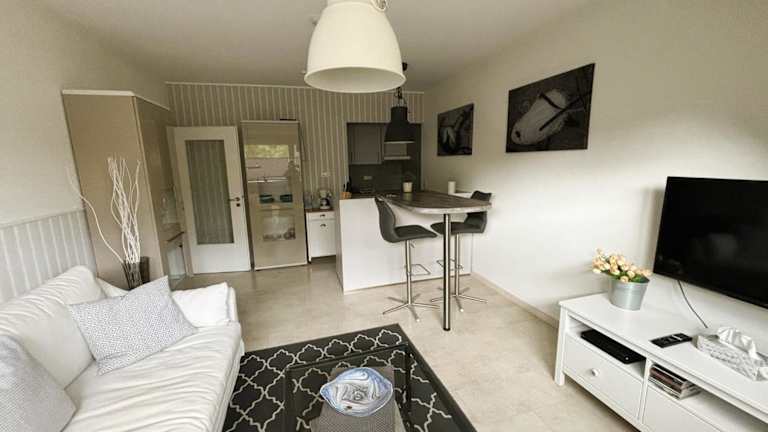 Die Wohnung enthält ein Schlafzimmer sowie eine Küchenzeile, die mit Kühlschrank und Geschirrspüler ausgestattet ist. Zusätzlich gibt es ein Badezimmer mit Dusche und Haartrockner. Alle öffentlichen und privaten Bereiche sind Nichtraucherzonen.