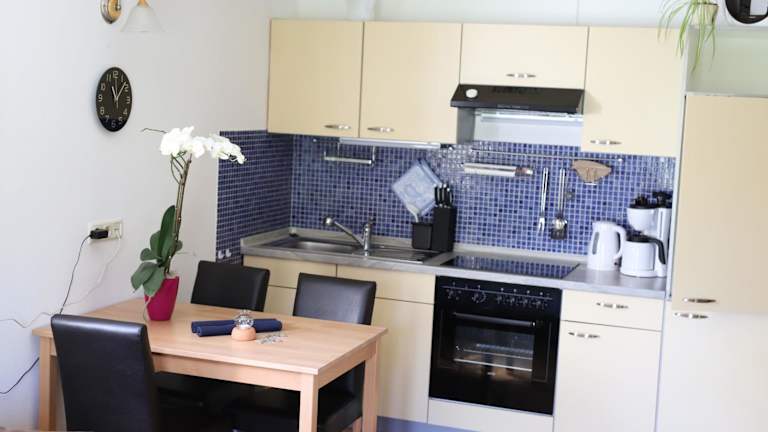 Die Ferienwohnung verfügt über 1 Schlafzimmer, ein Wohnzimmer, einen Flachbild-TV und eine gut ausgestattete Küche mit Kühlschrank und Ofen. Ein Badezimmer mit Dusche sowie eine Terrasse mit Bergblick runden die Ausstattung ab. Handtücher und Bettwäsche werden bereitgestellt.