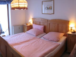 Ferienwohnung 60 m², 1-2 Personen, Schlafzimmer, Kabel-TV, Balkon, Nichtraucher, F*** - DTV klassifiziert Exclusive Nichtraucherwohnung, Küche extra, 1 Schlafzimmer, Wohnzimmer mit Kabel-TV, Radio mit CD-Player, DVD-Player, Schnurlos-Telefon, WLAN kostenlos, Bad/Du/WC, großer Balkon, Tischtennis im Kellerraum
