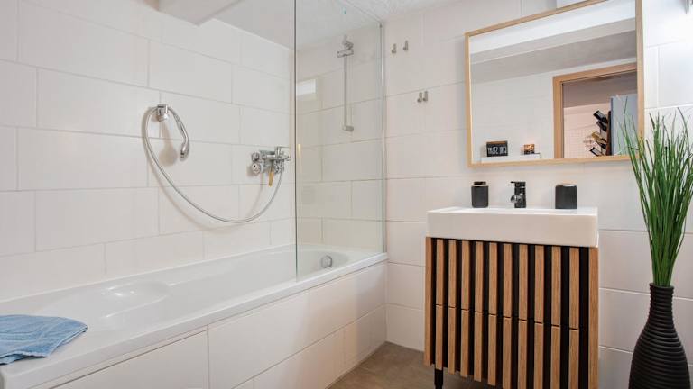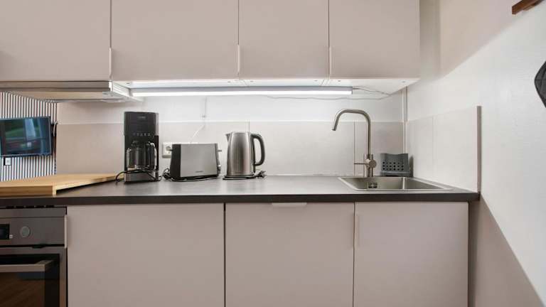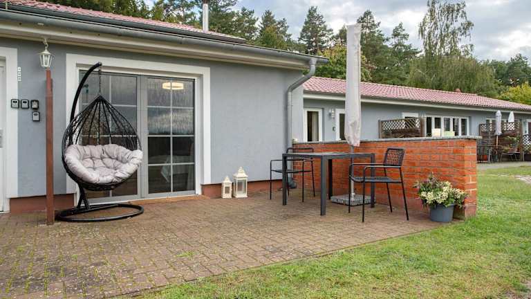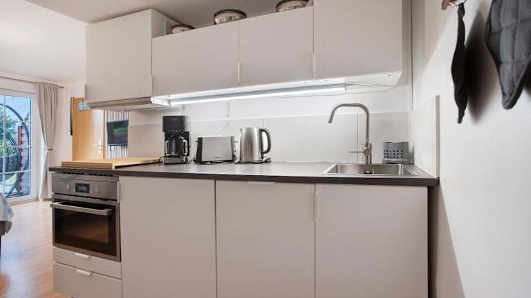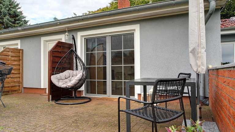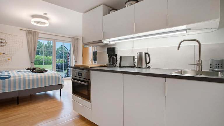 Die Ferienwohnung verfügt über ein Schlafzimmer, ein Badezimmer, Bettwäsche und Handtücher. Ein TV mit Satellitenkanälen ist vorhanden. Die voll ausgestattete Küche ermöglicht eine Selbstversorgung, und die Terrasse mit Gartenblick lädt zum Verweilen ein.