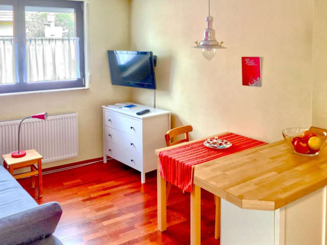 Die Ferienwohnung umfasst 2 Schlafzimmer, ein Wohnzimmer, eine voll ausgestattete Küche mit Kühlschrank und Kaffeemaschine sowie ein Badezimmer mit Dusche und Haartrockner. Handtücher und Bettwäsche werden bereitgestellt.