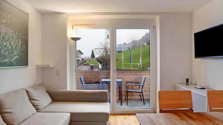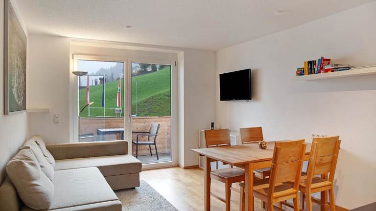 In der Umgebung der Ferienwohnung gibt es zahlreiche Möglichkeiten für Aktivitäten im Freien. Wandern, Skifahren und Velofahren stehen im Vordergrund. Zudem ist ein Abstellraum für Skier vorhanden, was das Wintersportangebot zusätzlich bereichert.