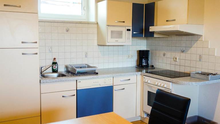 Einige Wohneinheiten verfügen über eine Küche, die mit einem Kühlschrank und einer Herdplatte ausgestattet ist.
