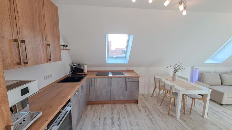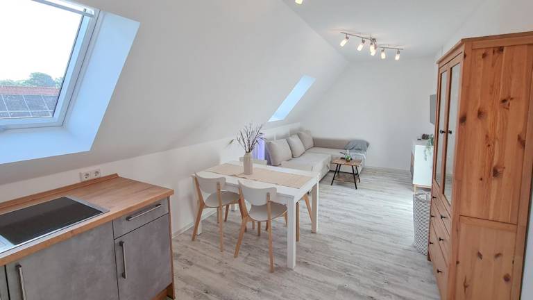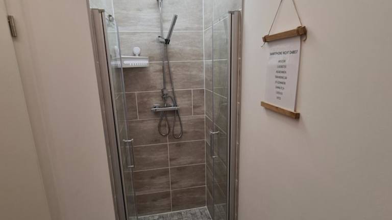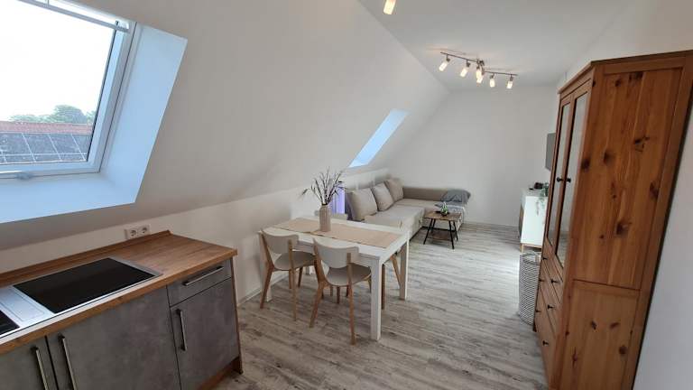 Die Wohnung besteht aus einem Schlafzimmer, einem Wohnzimmer sowie einem Badezimmer mit einer Dusche und einem Haartrockner. Die moderne Ausstattung sorgt dafür, dass sich die Gäste wohlfühlen können.