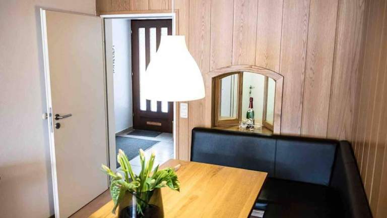 Das Ferienhaus verfügt über eine voll ausgestattete Küche mit einem Kühlschrank und einem Geschirrspüler, so dass Sie sich selbst verpflegen können. Alternativ gibt es in der Nähe auch Restaurants und Cafés, in denen Sie lokale Spezialitäten probieren können.