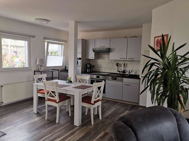 Die Ferienwohnung verfügt über zwei Schlafzimmer, ein Wohnzimmer und ein Badezimmer mit Dusche. Zudem gibt es einen Flachbild-TV sowie eine gut ausgestattete Küche mit Kühlschrank und Geschirrspüler. Für zusätzlichen Komfort können Handtücher und Bettwäsche auf Anfrage bereitgestellt werden.