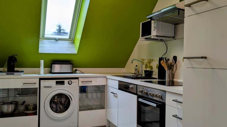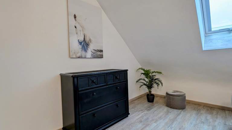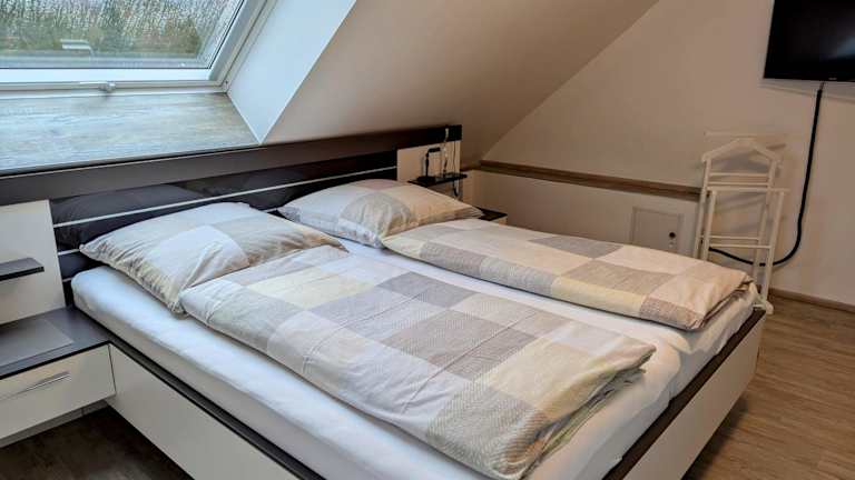 Die Ferienwohnung besteht aus 2 Schlafzimmern, einem Wohnzimmer, einer voll ausgestatteten Küche mit Kühlschrank und Kaffeemaschine sowie 1 Badezimmer mit Dusche und Haartrockner. Handtücher und Bettwäsche werden bereitgestellt.