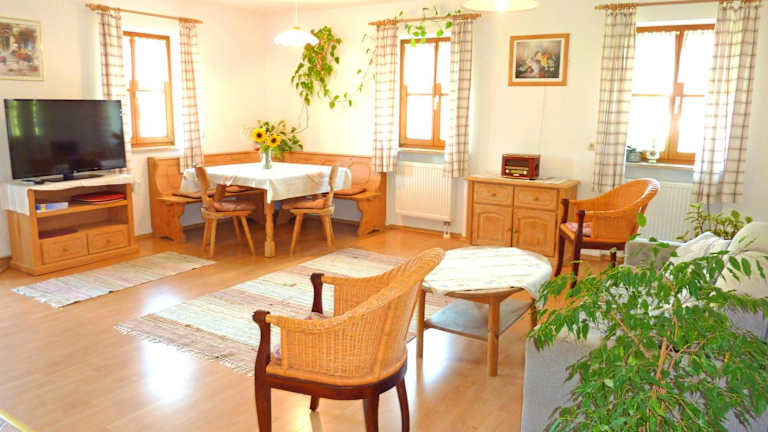 Die Ferienwohnung Maurer hat sich in Höhenberg 11, 21 km von Herrenchiemsee gelegen, was eine ruhige und naturnahe Umgebung bietet. In der Nähe finden sich zahlreiche Möglichkeiten für Aktivitäten in der Natur wie Skifahren und Velofahren.