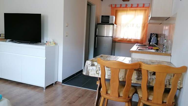 Die Unterkunft verfügt über eine voll ausgestattete Küche mit Kühlschrank, Kaffeemaschine, Geschirrspüler, Ofen, Mikrowelle und Wasserkocher, sodass die Gäste ihre eigenen Mahlzeiten zubereiten können. Zusätzlich lädt die Terrasse ein, die Umgebung zu geniessen, oder einfach ein Znüni oder Zvieri einzunehmen.