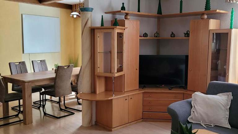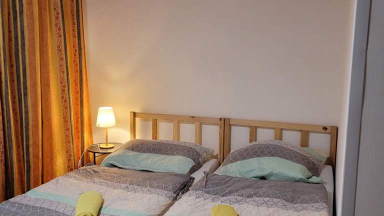 Die Ferienwohnung umfasst 3 Schlafzimmer, ein Wohnzimmer und eine voll ausgestattete Küche mit Kühlschrank und Wasserkocher. Das Badezimmer ist mit einer Dusche und einer Badewanne ausgestattet. Handtücher und Bettwäsche können gegen Aufpreis bereitgestellt werden.
