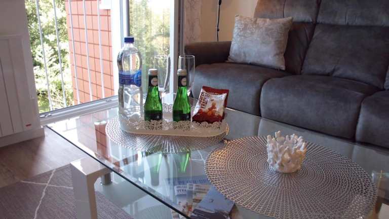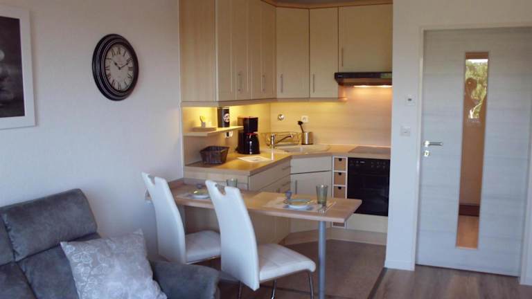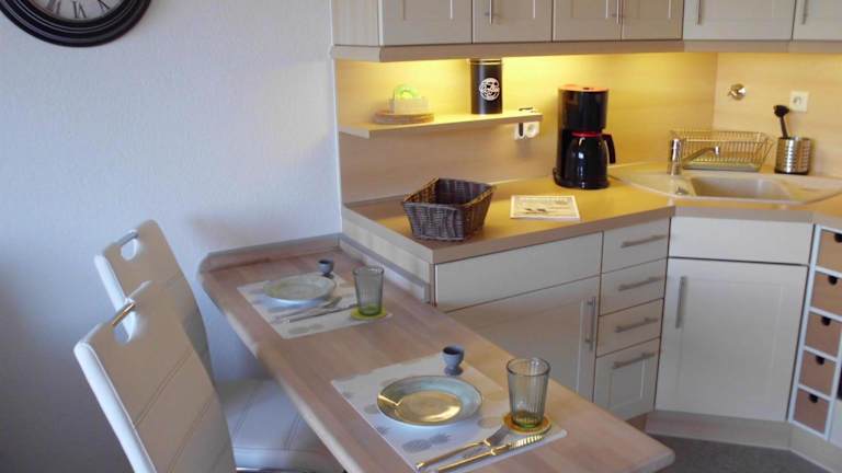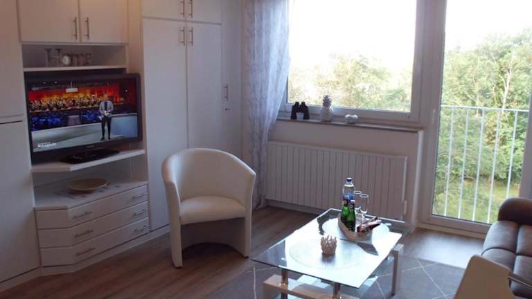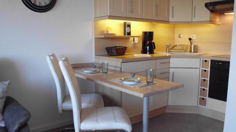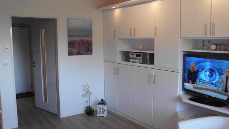 Die Ferienwohnung umfasst ein Schlafzimmer, ein Wohnzimmer mit Flachbild-TV und Satellitenkanälen sowie eine voll ausgestattete Küchenzeile mit Kühlschrank und Herdplatte. Zudem steht ein Badezimmer mit Dusche zur Verfügung. Handtücher und Bettwäsche werden bereitgestellt.