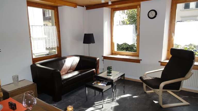Die Ferienwohnung Meiringen befindet sich in der charmanten Ortschaft Meiringen und bietet einen schönen Stadtblick. Die Umgebung ist geprägt von einer malerischen Landschaft und bietet zahlreiche Freizeitmöglichkeiten. Die bekannten Giessbachfälle liegen 14 km entfernt, und das Freilichtmuseum Ballenberg ist nur 10 km von der Unterkunft entfernt. Der Bahnhof Luzern ist 50 km und der Flughafen Zürich ist 112 km entfernt.