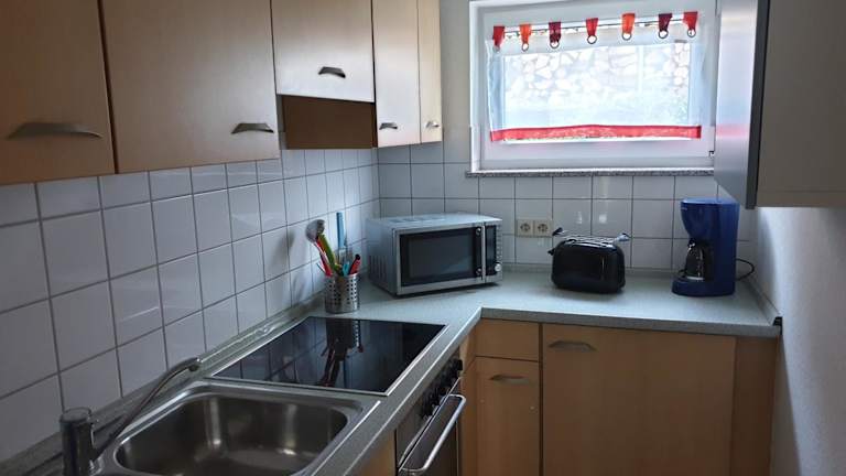 Die Ferienwohnung umfasst 1 Schlafzimmer, ein Wohnzimmer sowie eine voll ausgestattete Küche, die mit einem Kühlschrank und einer Kaffeemaschine ausgestattet ist. Zudem stehen ein Badezimmer mit Dusche und Haartrockner bereit. Für den Aufenthalt werden Handtücher und Bettwäsche bereitgestellt.