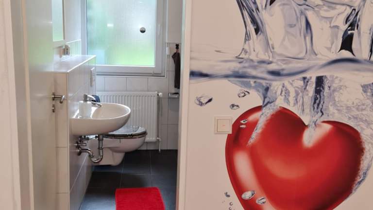 Die Ferienwohnung / Messeunterkunft bietet Übernachtungsmöglichkeiten in einer heimeligen Atmosphäre, ausgestattet mit einem privaten Garten und einer Terrasse, die einen schönen Blick auf das Gelände ermöglichen. Es handelt sich um eine Nichtraucherunterkunft, die besonderen Wert auf Sauberkeit und Sicherheit legt, darunter Massnahmen gegen das Coronavirus. Es wird darauf geachtet, dass die Unterkunft für feierliche Anlässe wie Junggesellenabschiede nicht genutzt werden kann.