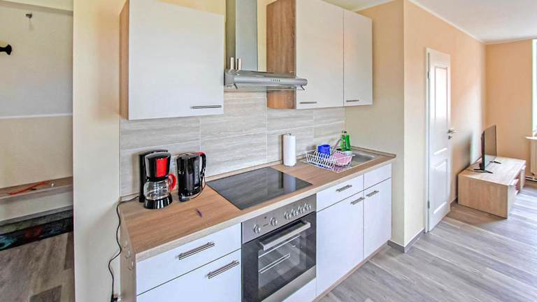 Die Ferienwohnung bietet ein Schlafzimmer und ein Wohnzimmer. Die Unterkunft ist mit einem Kabel Flachbild-TV sowie einer voll ausgestatteten Küche, die einen Kühlschrank beinhaltet, ausgestattet.