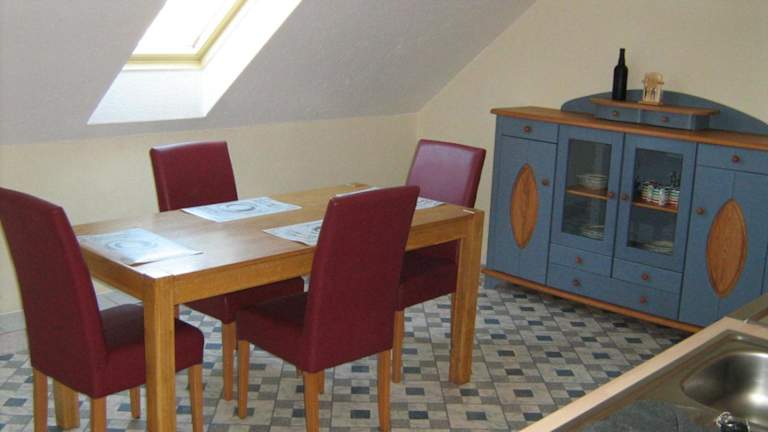 Die voll ausgestattete Küche in der Ferienwohnung ermöglicht es den Gästen, eigene Mahlzeiten zuzubereiten. Zudem stehen Grillmöglichkeiten zur Verfügung.