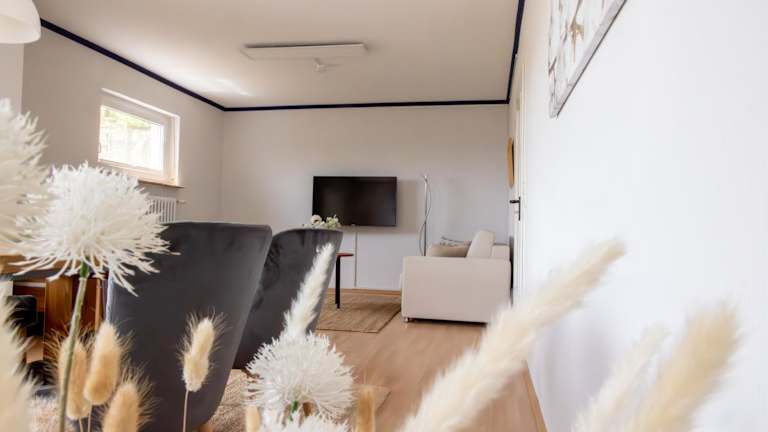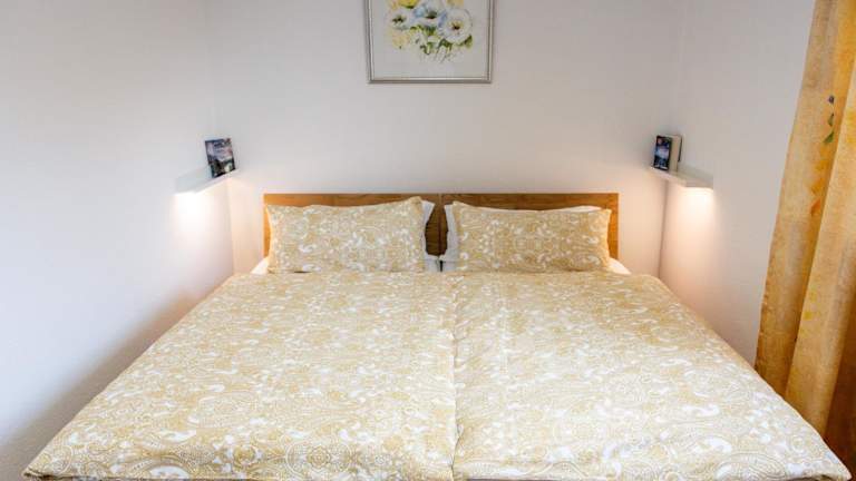 Die Ferienwohnung hat 1 Schlafzimmer, ein Wohnzimmer mit Flachbild-TV, eine gut ausgestattete Küche mit Kühlschrank und Mikrowelle sowie 1 Badezimmer mit Dusche.