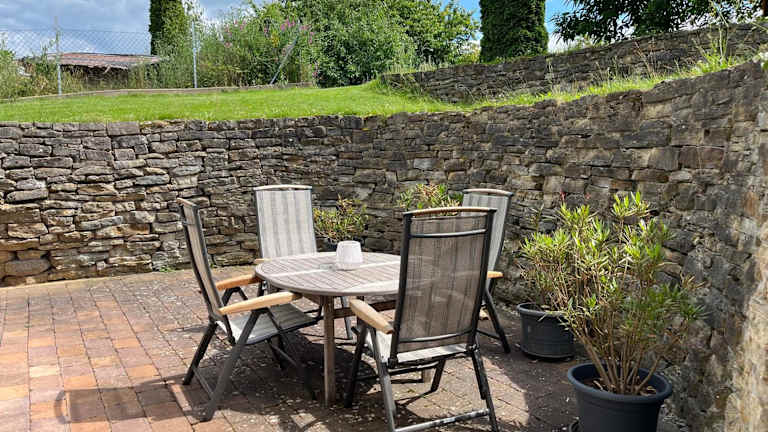 Die Unterkunft Ferienwohnung mit Terrasse bietet Übernachtungsmöglichkeiten mit einer einladenden Terrasse und einem schönen Gartenblick. Den Gästen steht ein Privatparkplatz zur Verfügung und es wird kostenloses Wifi gewährleistet.