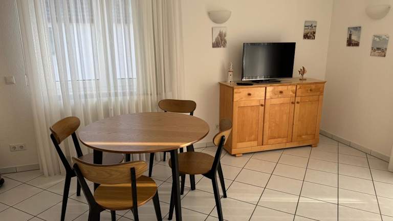 Die Ferienwohnung Möwe bietet eine Terrasse sowie eine eigene Unterkunft mit einem Balkon. Ein kostenloser Privatparkplatz ist vorhanden. Die Mindestalter für den Check-in liegt bei 18 Jahren. Haustiere sind in der Unterkunft nicht gestattet, und private Feiern sind ebenfalls nicht erlaubt. Die Mitarbeiter kommunizieren auf Deutsch.
