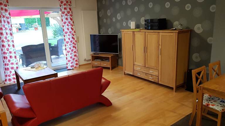 Die Unterkunft Ferienwohnung Mohnblume bietet Übernachtungsmöglichkeiten in einem heimeligen Gebäude aus dem Jahr 1969. Gäste profitieren von kostenlosem Wifi und einer Terrasse mit Gartenblick.