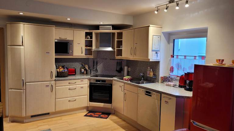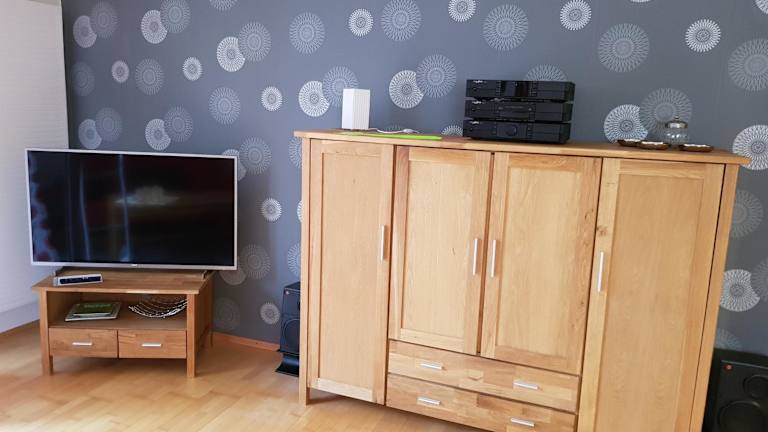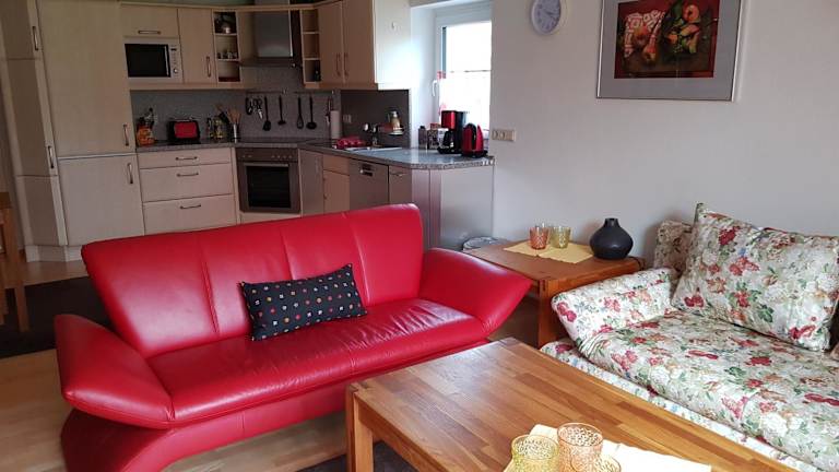 Die Ferienwohnung verfügt über 1 Schlafzimmer, ein Wohnzimmer mit Flachbild-TV, sowie eine gut ausgestattete Küche mit Kühlschrank und Geschirrspüler. Ein Badezimmer mit Dusche sowie Handtücher und Bettwäsche sind ebenfalls vorhanden.