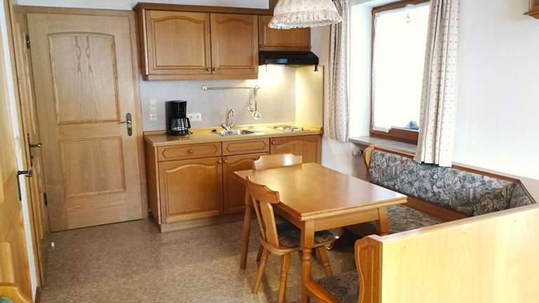 Das Haus Moosbach bietet Selbstversorgungsmöglichkeiten mit seiner gut ausgestatteten Küchenzeile. Sie können Ihre eigenen Mahlzeiten zubereiten und diese auf dem Balkon mit Bergblick genießen. Alternativ gibt es in der Umgebung auch verschiedene Restaurants und Cafés, in denen Sie regionale Spezialitäten probieren können.