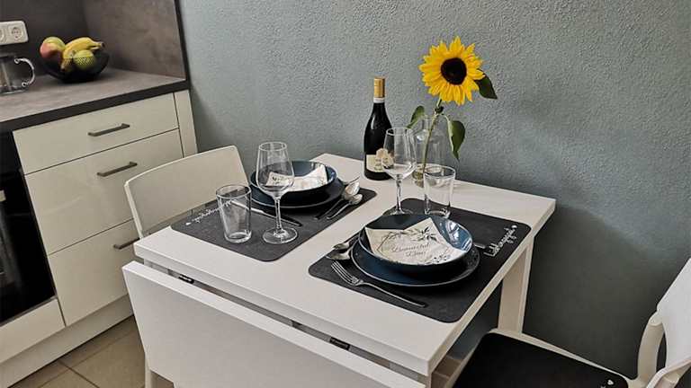 Die Ferienwohnung bietet ein Schlafzimmer, eine voll ausgestattete Küche mit Kühlschrank und Geschirrspüler sowie ein Badezimmer mit Dusche, Haartrockner und Waschmaschine. Ein Fernseher steht ebenfalls zur Verfügung.