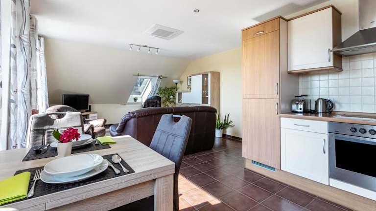 Die Ferienwohnung verfügt über 2 Schlafzimmer, 1 Badezimmer, Bettwäsche, Handtücher, einen TV mit Satellitenkanälen sowie eine voll ausgestattete Küche. Eine Terrasse mit Gartenblick ist ebenfalls vorhanden.