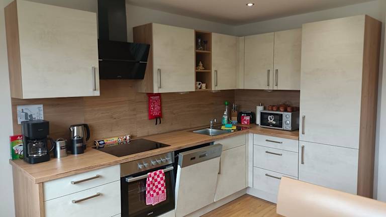 Die Ferienwohnung verfügt über 2 Schlafzimmer, ein Wohnzimmer mit Flachbild-TV und eine gut ausgestattete Küche, die mit einem Kühlschrank und einem Geschirrspüler versehen ist. Des Weiteren hat die Unterkunft ein Badezimmer mit Dusche. Handtücher und Bettwäsche werden bereitgestellt.