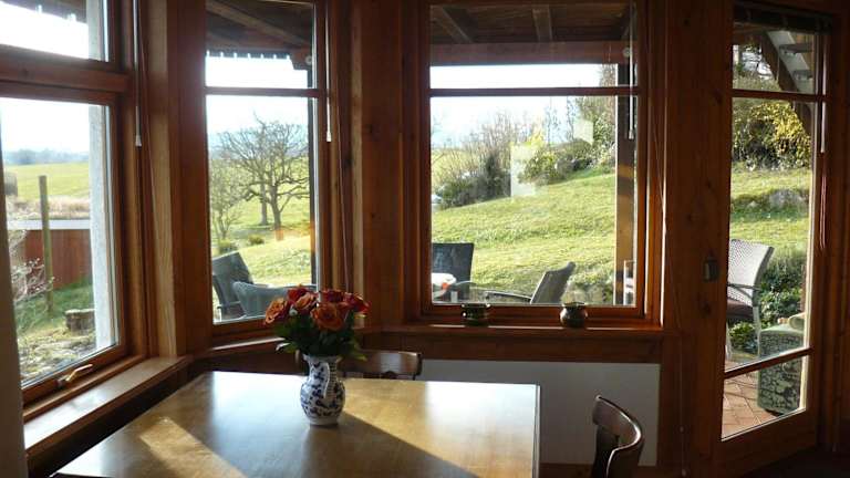 Die Ferienwohnung Naturhaus, 50qm, befindet sich am Hirschweg in einer ruhigen Umgebung, ungefähr 12 km vom Hauptbahnhof Konstanz entfernt und 11 km von der Klosterinsel Reichenau im Bodensee. Die Unterkunft bietet einen geschützten Garten sowie einen schönen Blick auf den See.