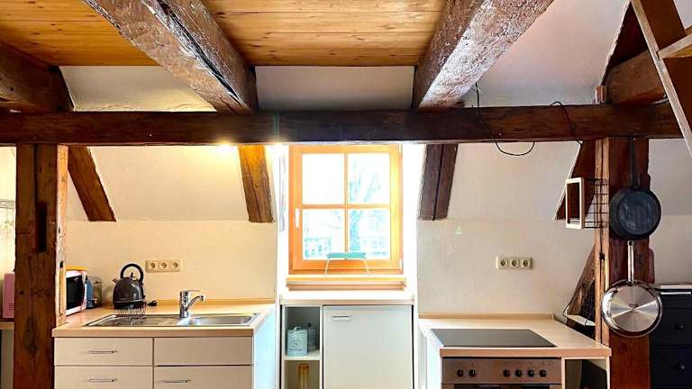 Die Ferienwohnung ist mit 1 Schlafzimmer und einer voll ausgestatteten Küchenzeile ausgestattet, die einen Ofen und eine Mikrowelle umfasst. Zudem verfügt sie über 1 Badezimmer mit Dusche und Haartrockner. Handtücher und Bettwäsche werden bereitgestellt.