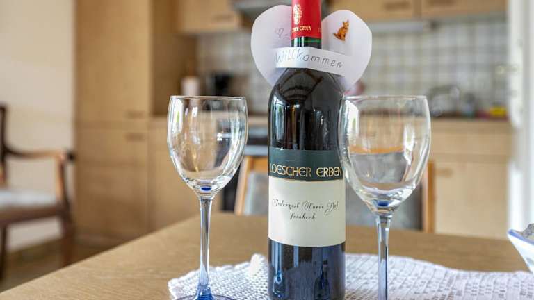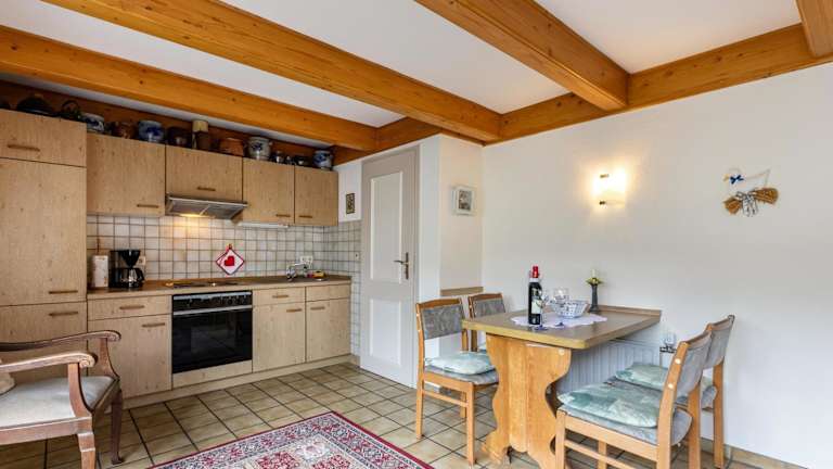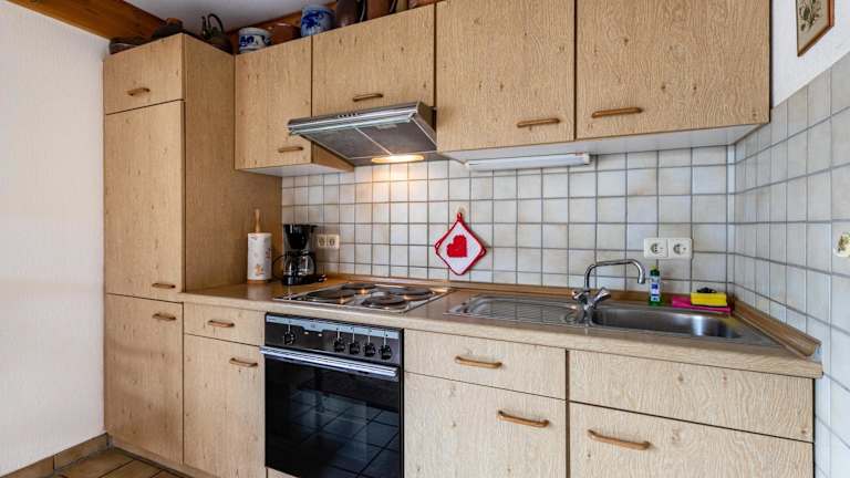 Die gut ausgestattete Küche in der Ferienwohnung umfasst einen Kühlschrank und einen Ofen, was die Zubereitung eigener Mahlzeiten erleichtert. Zudem steht ein Grill zur Verfügung.