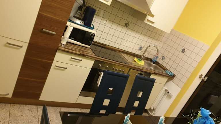 Die Ferienwohnung bietet eine voll ausgestattete Küche mit einem Backofen und einem Kühlschrank, sodass Gäste ihre eigenen Mahlzeiten zubereiten können.